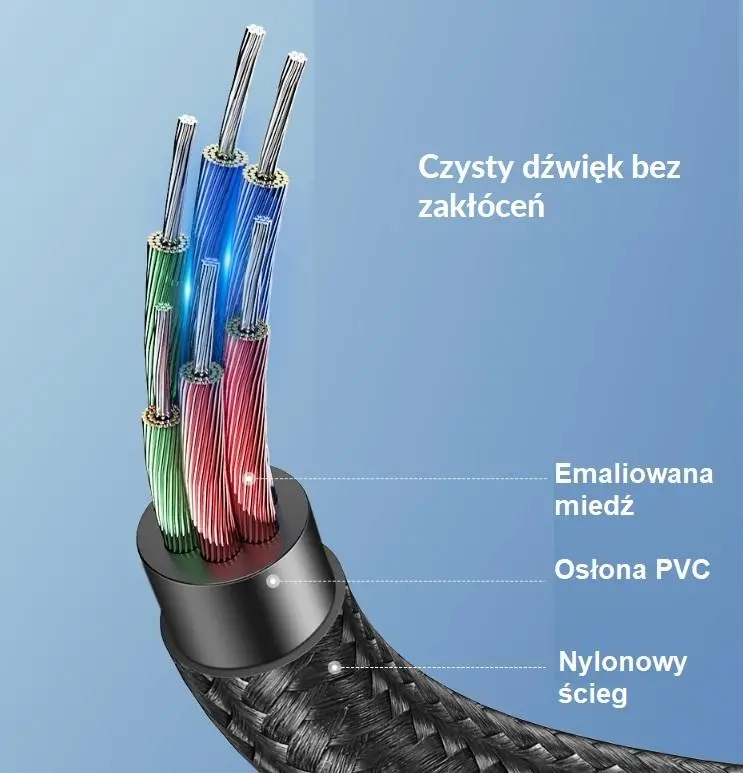 Adapter UGREEN dla otrzymania jak najwyższej jakości sygnału został wykonany z wysokiej jakości materiałów takich jak emaliowane miedziane przewody osłonę PVC i nylonową powłokę zewnętrzną. Adapter wspiera pilot sterujący oraz mikrofon.