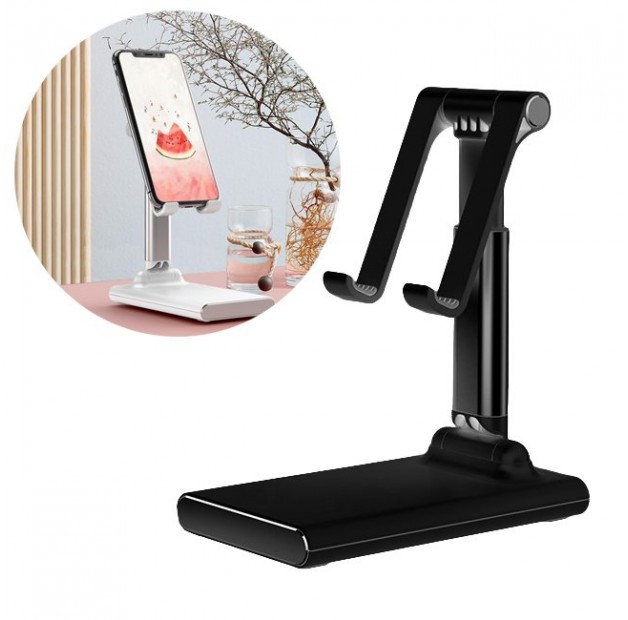 Biurkowy teleskopowy stojak składana podstawka na telefon tablet czarny