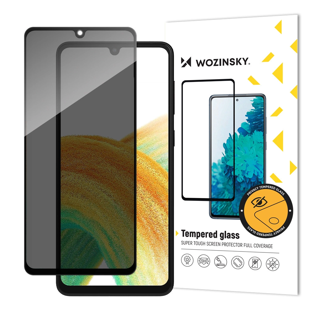 Prywatyzujące szkło hartowane Samsung Galaxy A33 5G z serii Wozinsky Privacy Glass z filtrem Anti Spy i czarną ramką